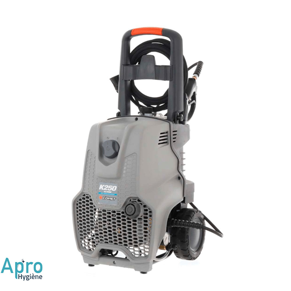 Le Comet K250 10/150 M Classic est conçu pour les utilisateurs exigeants à la recherche d’un nettoyeur haute pression robuste, puissant et fiable. Équipé d’un moteur 4 pôles de 2 900 W, ce modèle garantit un fonctionnement stable, silencieux et protégé contre la surchauffe et la corrosion. Sa pression de 150 bars, ajustable via une vanne professionnelle, combinée à un débit de 600 litres par heure, permet un nettoyage rapide et en profondeur sur tous types de surfaces.